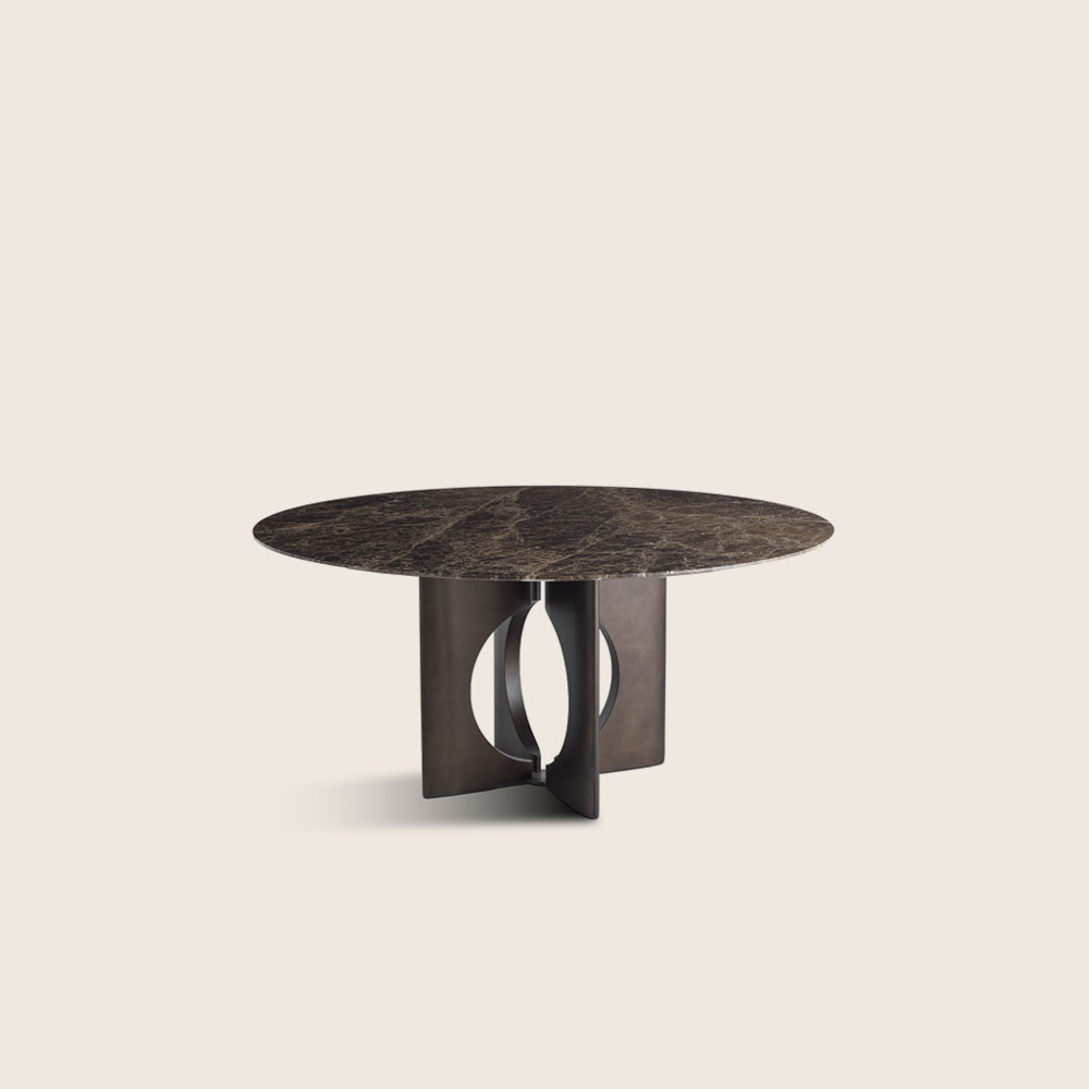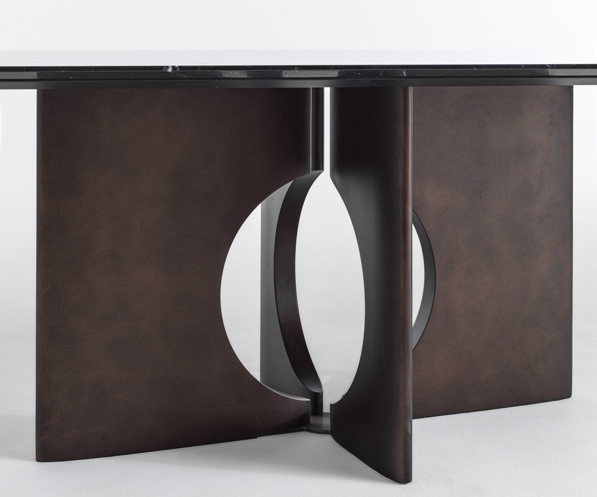Sintesi perfetta di equilibrio e materia, il tavolo Brion è un omaggio alla poetica scarpiana dove il dialogo tra pieni e vuoti si traduce in forme pure ed essenziali. Il piano in marmo o in legno, dalle linee organiche e affusolate, si posa su una base scultorea caratterizzata da aperture circolari che evocano le geometrie e le suggestioni simboliche del celebre mausoleo veneto Brion.