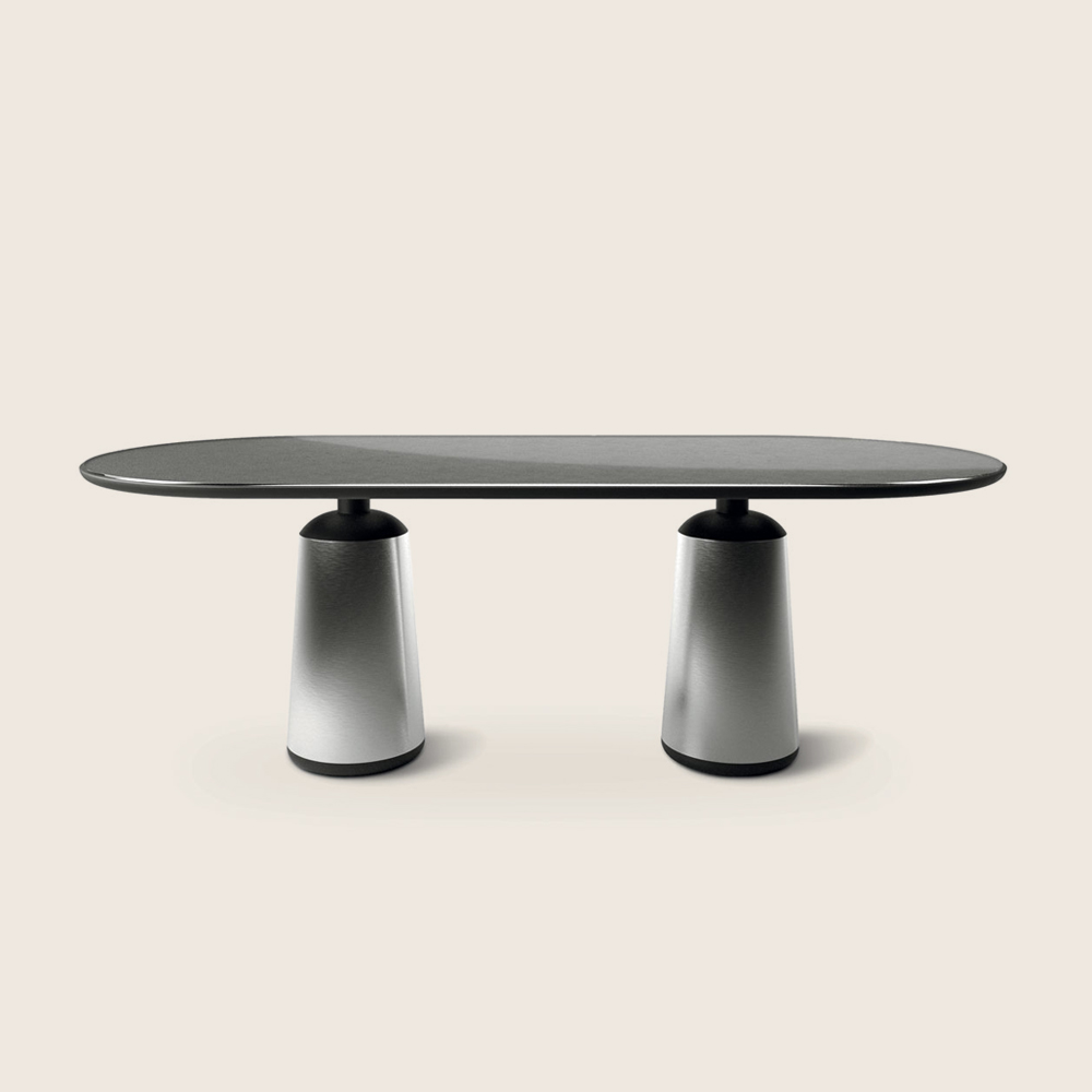 Marien è un esemplare di stile ed eleganza, dalla grande personalità grazie ad un mix di elementi unici. Una base imponente che si sviluppa verso l’alto per supportare il top perfettamente incastonato in un sottile bordo perimetrale: proprio come Marienplatz, cuore pulsante di Monaco, immersa nell’atmosfera unica e inconfondibile della Baviera. Il tavolo è disponibile in tre dimensioni diverse, e il top può essere realizzato in marmo, Fenix o vetro retroverniciato. Marien appartiene alla collezione Plaza, un progetto che racconta un viaggio metaforico tra le capitali europee interpretandone le piazze urbane più iconiche, e si compone di tavoli, sedute, cabinet, desk e consolle, progettati non solo per la dimensione domestica più intima, ma anche per gli spazi dinamici dell’accoglienza.‎‎