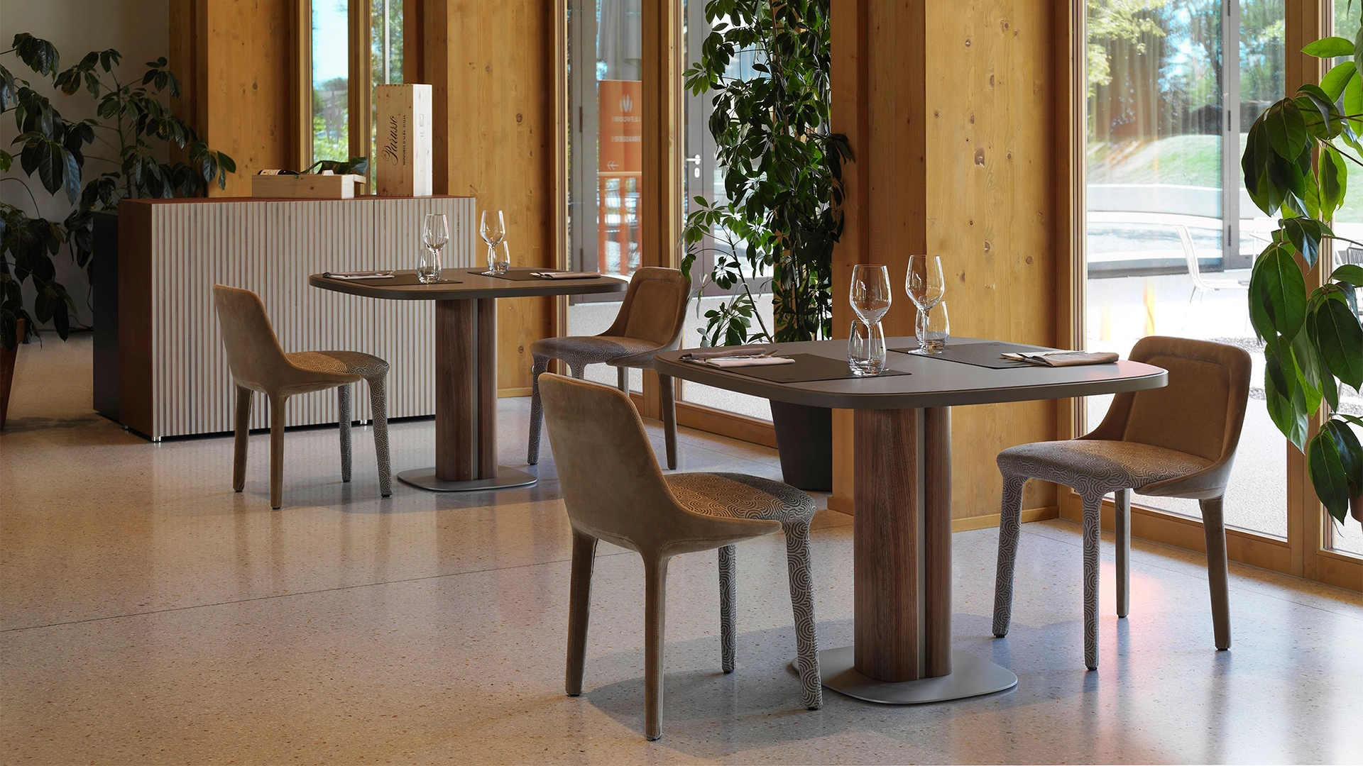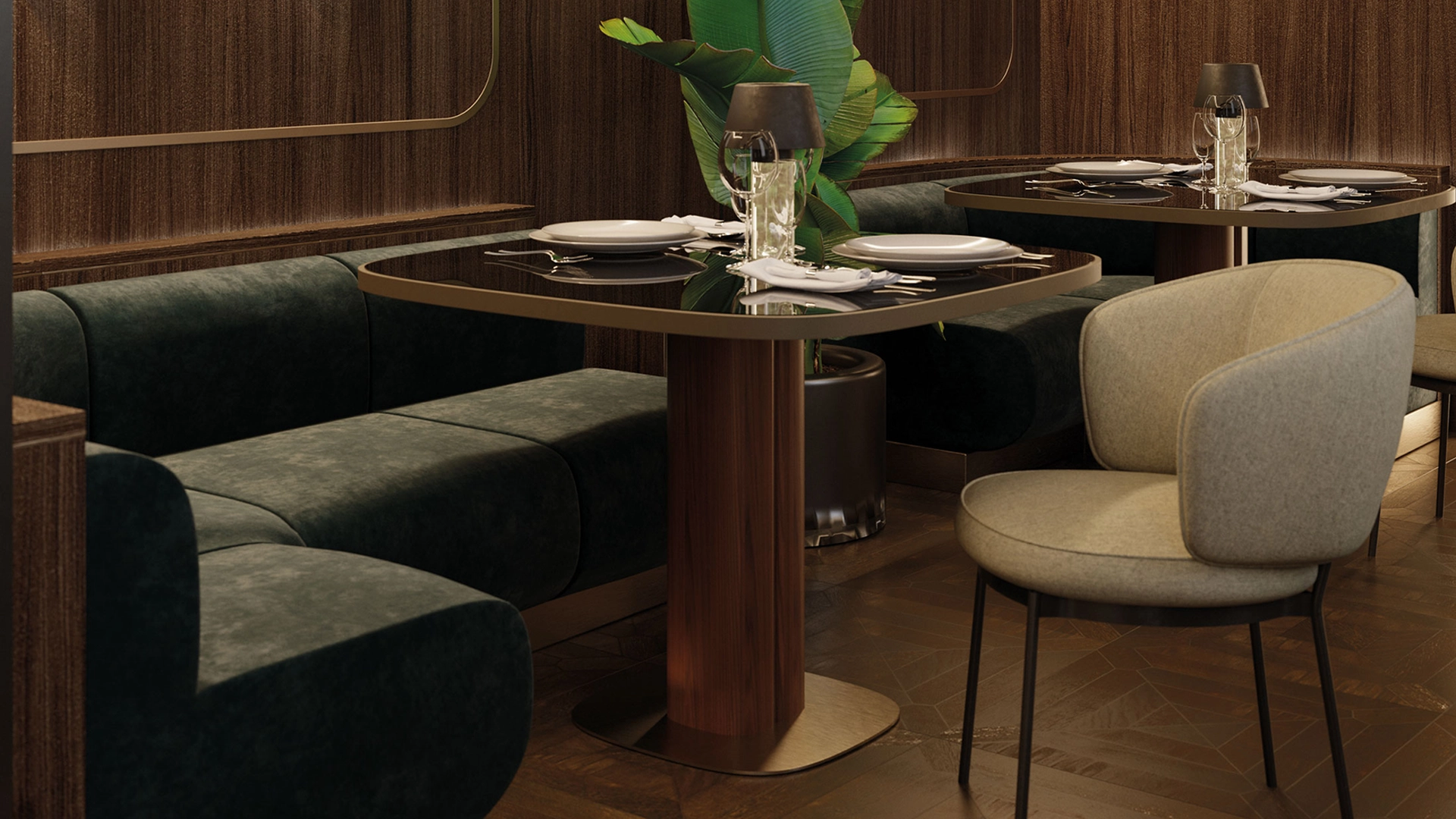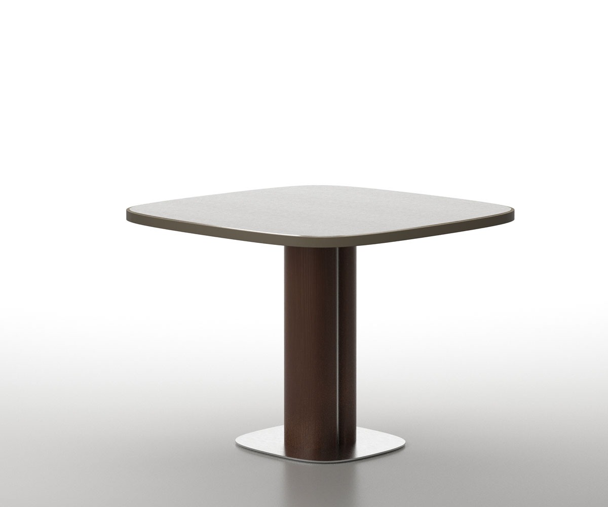 La particolare forma di Trafalgar si compone di un piano con angoli smussati e un robusto basamento in legno con inserti metallici, chiara ispirazione alla colonna dell’Ammiraglio Nelson a nell’omonima piazza di Londra. Il tavolo è disponibile in due dimensioni diverse, e il top può essere realizzato in legno, marmo, Fenix o vetro retroverniciato. Trafalgar appartiene alla collezione Plaza, un progetto che racconta un viaggio metaforico tra le capitali europee interpretandone le piazze urbane più iconiche, e si compone di tavoli, sedute, cabinet, desk e consolle, progettati non solo per la dimensione domestica più intima, ma anche per gli spazi dinamici dell’accoglienza.
