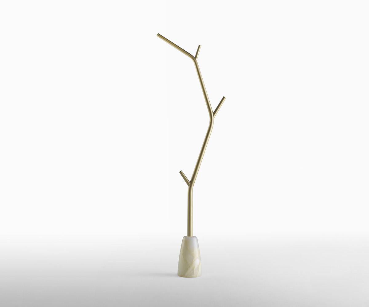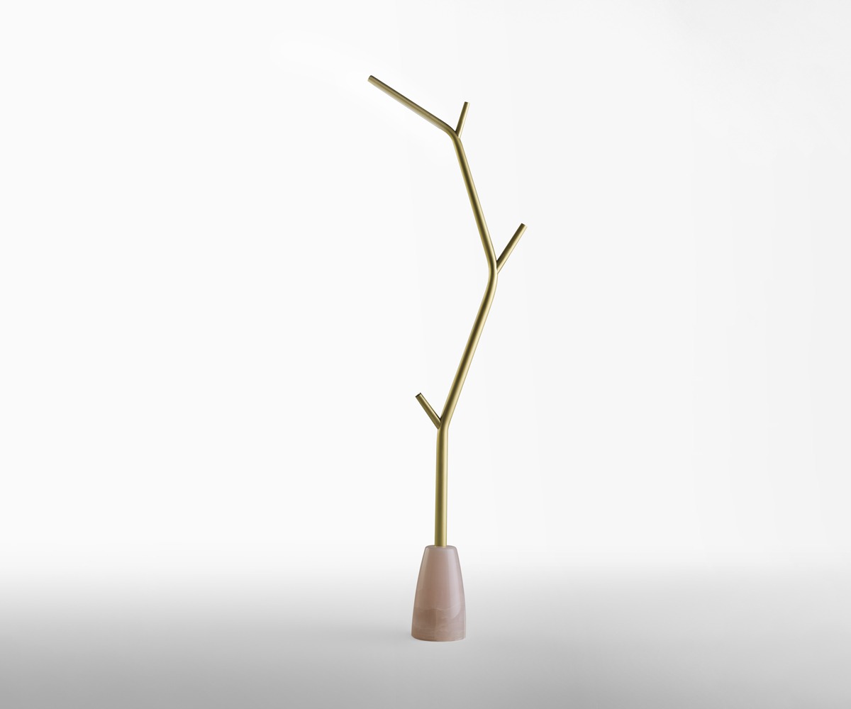 Aira è una lampada da terra che unisce luce e scultura in un equilibrio di rara eleganza. La struttura in ottone verniciato oro si innalza con naturale leggerezza, ramificandosi come un elemento organico, mentre la base in marmo ne ancora la forma alla terra, donando stabilità e preziosità materica. L’illuminazione a LED integrato diffonde una luce morbida e calda, capace di creare un’atmosfera intima e sofisticata.