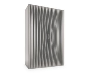 L’armadio Blend ha le ante caratterizzate da sottili lamine di MDF equidistanti tra loro, che insieme creano un effetto cinetico. Il tema della dinamicità è la caratteristica predominante del designer Karim Rashid, che con Blend riesce ad apportare al prodotto una connotazione scultorea. Senza dimenticare capienza e funzionalità.