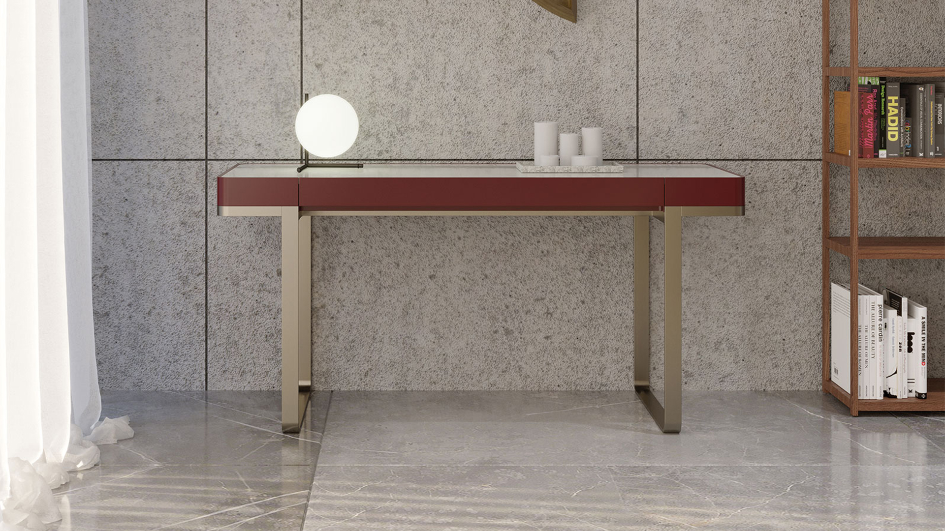 La consolle Imperio si ispira all’omonima piazza di Lisbona dal lungo lato quadrato. La consolle scorre lunga nella sua delicata ed elegante struttura. Il top in diversi materiali ha gli angoli arrotondati e simmetricamente sorretto da lunghe gambe in metallo.