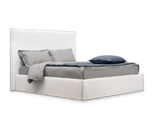 Tahiti High è un letto imbottito e rivestito in tessuto o ecopelle, disponibile con o senza contenitore a doppia apertura. Il rivestimento è sfoderabile e lavabile e può essere realizzato scegliendo tra i tessuti in campionario. Il giroletto è smontabile per un facile trasporto. Le piastre angolari di sostegno della rete sono regolabili in altezza per posizionare il materasso incassandolo nel giroletto (solo nella versione senza contenitore). La rete di serie (a doghe fisse con telaio in metallo) può essere sostituita da una rete elettrica (movimento testa/piedi) con telaio in legno. Materasso venduto a parte.