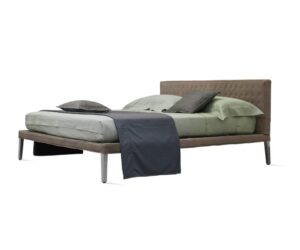 Ebridi è un letto imbottito e rivestito in pelle, tessuto o ecopelle. Il rivestimento è sfoderabile e lavabile e può essere realizzato scegliendo tra i tessuti in campionario. Il rivestimento della tstiera è trapuntato. Il giroletto è smontabile per un facile trasporto. I piedini sono in faggio massello e possono avere finitura moca, naturale, noce o laccato bianco. Materasso venduto a parte: consulta la collezione Orizzonti Italia.