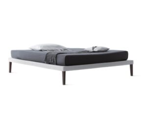 Ebridi è un letto imbottito e rivestito in pelle, tessuto o ecopelle. Il rivestimento è sfoderabile e lavabile e può essere realizzato scegliendo tra i tessuti in campionario. Il giroletto è smontabile per un facile trasporto ed è esterno al materasso. La rete di serie è a doghe fisse con telaio in metallo e regolatori di rigidità. I piedini sono in faggio massello e possono avere finitura moca, naturale, noce o laccato bianco. Materasso venduto a parte.