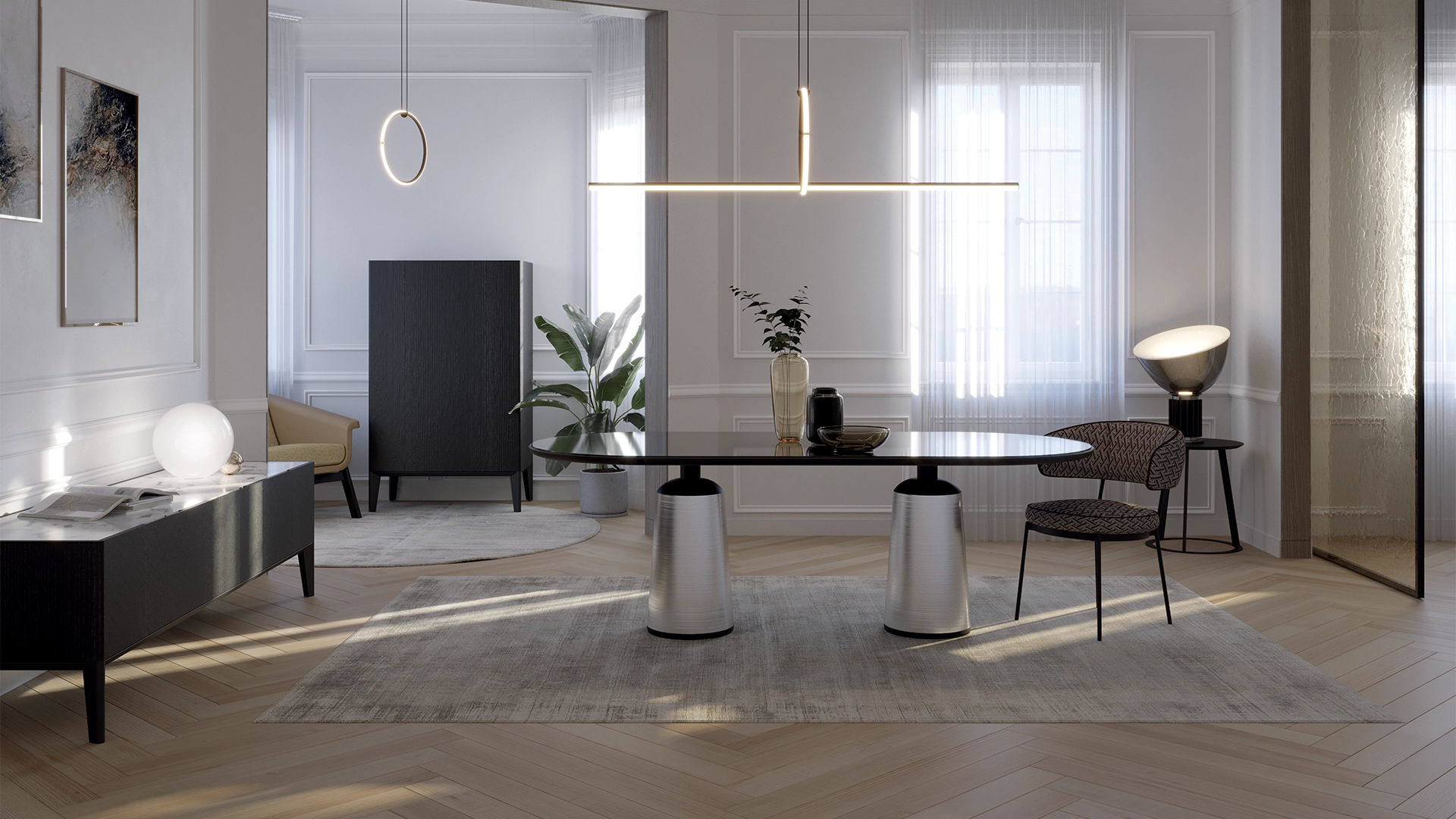 La collezione Plaza racconta un viaggio metaforico tra le capitali europee interpretandone le piazze urbane più iconiche, e si compone di tavoli, sedute, cabinet, writing desk e consolle, progettati non solo per la dimensione domestica più intima, ma anche per gli spazi dinamici dell’accoglienza.