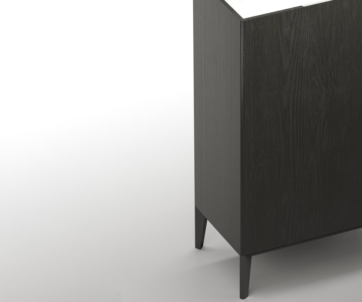 Il Dam cabinet di forma rettangolare come la famosa piazza di Amsterdam, presenta delle ante in legno dalle varie finiture, come ad esempio il frassino nero, dall’apertura a libro, che possono essere separate da un cassetto centrale nella versione Low che nasconde un ulteriore elemento contenitore.‎ La parte metallica segue tutto il basso perimetro del cabinet e termina in quattro piedi agli angoli esterni.‎ La collezione Dam cabinet si arricchisce di ulteriori elementi dalle diverse dimensioni, come il mobile buffet ed il cabinet bar.‎
