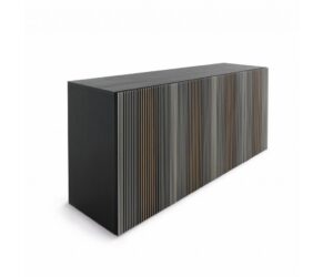 Carlos è una madia che trasforma il design in esperienza visiva, ispirandosi alla ricerca cromatica di Carlos Cruz-Diez, maestro indiscusso dell’Op Art. I frontali vibrano di riflessi mutevoli, che variano con la luce e con il movimento dello sguardo, creando un dialogo continuo tra osservatore e arredo.