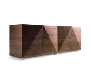 Not Riddled presenta ante plasmate a forma di diamante che si aprono e si chiudono senza l’ausilio di cerniere. Steven Holl ha saputo modellare un foglio di legno-tessuto che, grazie a piccole incisioni eseguite al laser, può essere piegato come un origami, abbracciando i fianchi del contenitore. Not Riddled è la sublimazione di un’estetica contemporanea e di un’intelligente applicazione di innovazione meccanica.