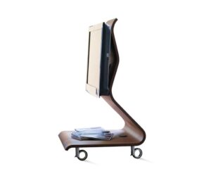 Dotato di ruote frenanti, Cobra può essere spostato con facilità all’interno dello spazio domestico, adattandosi alle diverse esigenze di visione e di arredo.