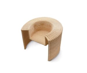 L’intreccio in midollino naturale, realizzato interamente a mano, conferisce leggerezza visiva e un pregio artigianale senza tempo. Charlotte è un piccolo capolavoro di sintesi formale: un oggetto scultoreo ma accogliente, ideale tanto per ambienti domestici quanto per spazi contract raffinati.