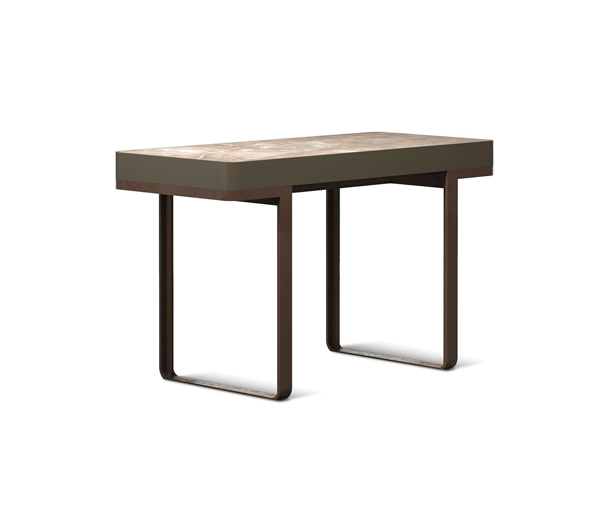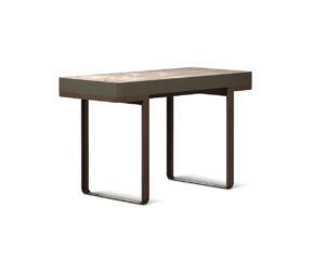 L’Imperio Writing Desk ispirato all’omonima piazza di Lisbona dal lungo lato quadrato è un’alta scrivania dal piano indipendente che può essere arricchito da diverse finiture pregiate, come il marmo o il vetro retroverniciato. Un cassetto centrale divide la sua simmetria laterale sorretta da lunghe gambe in metallo.