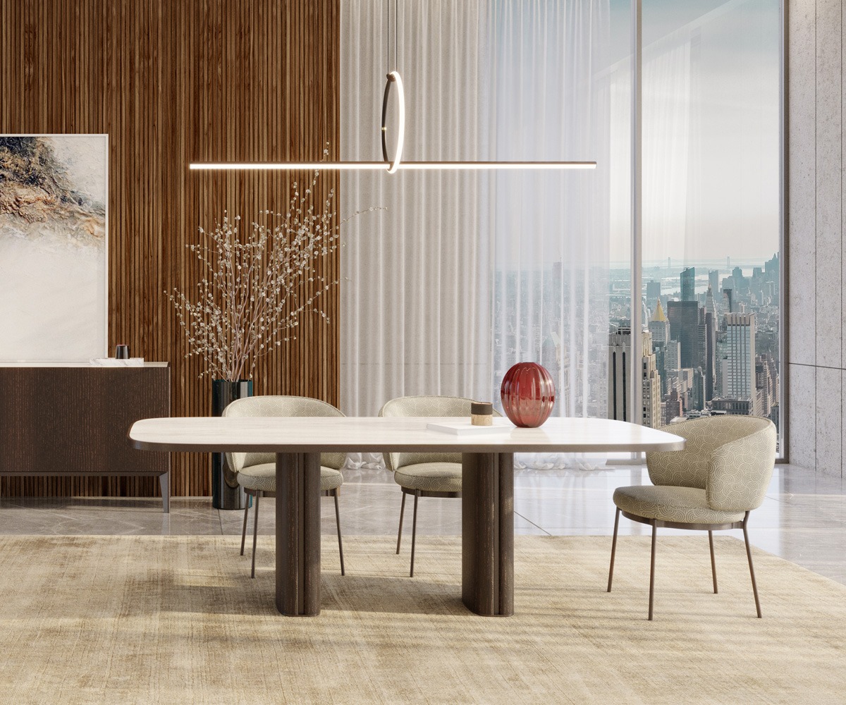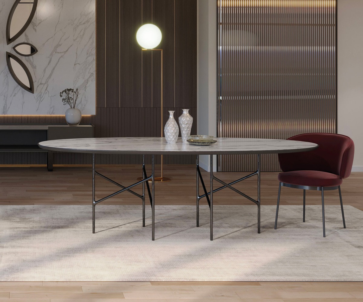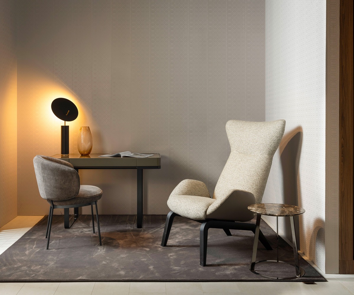 La Concorde Chair dalle forme ampie come la piazza da cui prende il nome è una seduta accogliente, complice il suo schienale totale. Una poltroncina fluida nella forma e pregiata nelle finiture. La sezione circolare metallica fa da base per la cuscinatura regolare e le gambe in metallo crudo esterne. La collezione Plaza racconta un viaggio metaforico tra le capitali europee interpretandone le piazze urbane più iconiche, e si compone di tavoli, sedute, cabinet, writing desk e consolle, progettati non solo per la dimensione domestica più intima, ma anche per gli spazi dinamici dell’accoglienza.