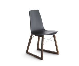 Il nome e la X che caratterizza il fronte di questa sedia sono un evidente richiamo a Charles e Ray Eames. La comoda seduta è sostenuta da una slitta conferendo alla sedia Ray una forte valenza estetica.