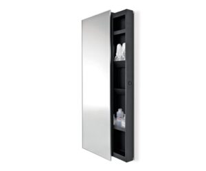 Backstage reinterpreta il concetto di specchiera, trasformandolo in un elemento multifunzionale dal carattere elegante e contemporaneo. Dietro la superficie riflettente, fissa e sicura, si nasconde un vano contenitore in metallo che scorre delicatamente sia verso destra che verso sinistra, rivelando un interno ordinato e sorprendente.