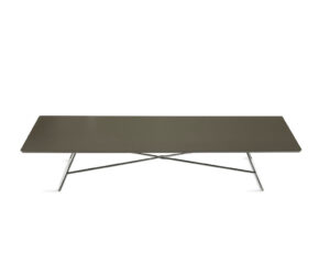Charleston è un tavolino rettangolare da salotto da caffè laccato. Struttura in metallo cromato. Top in MDF laccato opaco o lucido. Charleston fa parte dei complementi progettati da Roberto Palomba e Ludovica Serafini per accompagnare la collezione di divani componibili Horm da loro disegnata. Struttura in metallo cromato.